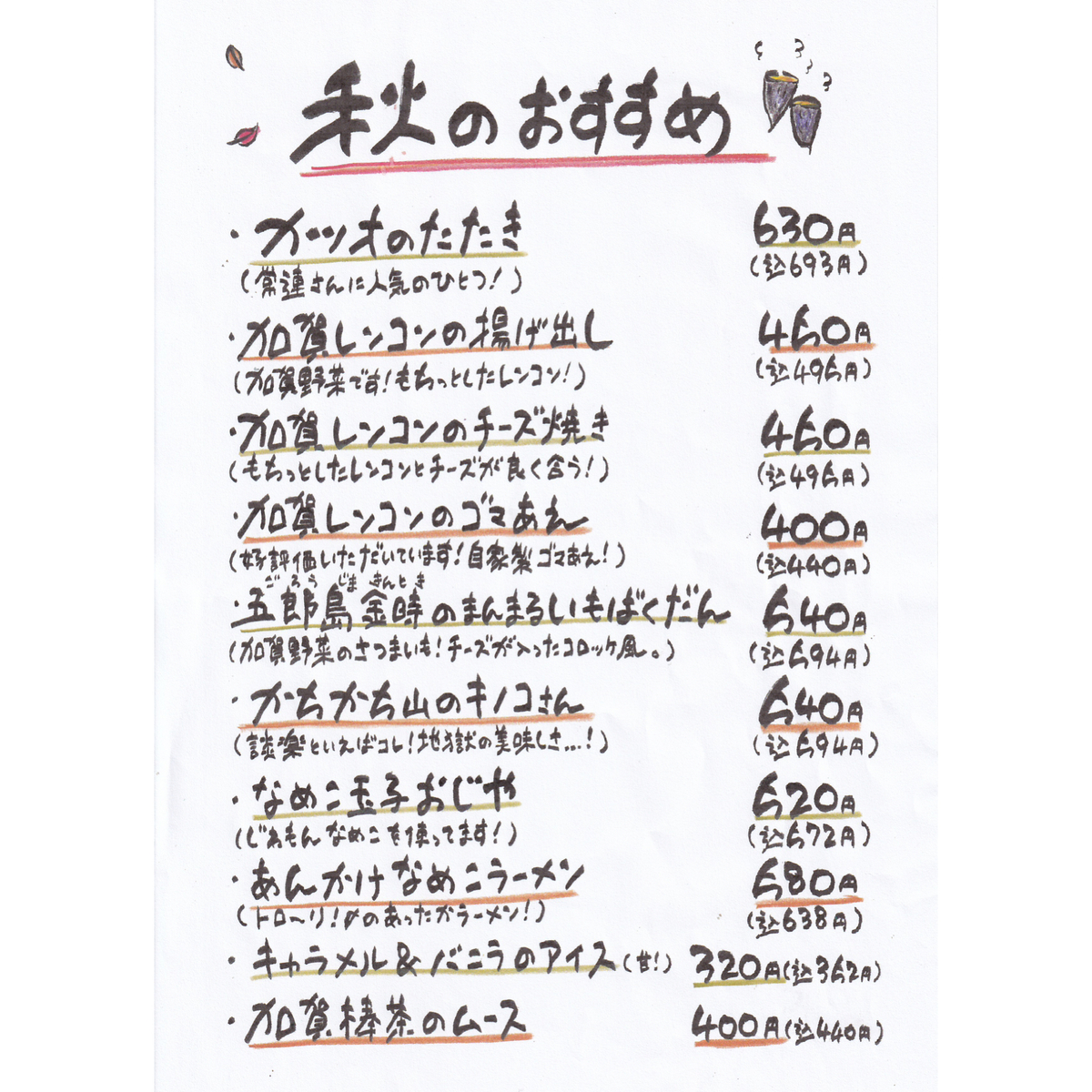秋のおすすめメニューです
